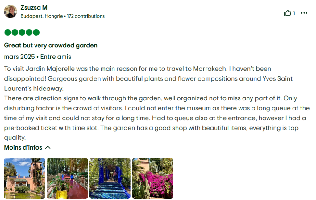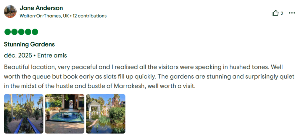 1. Jardin Majorelle now operates on timed-entry tickets, and booking in advance is strongly recommended, especially during peak travel months. Many travelers assume they can simply show up and walk in, and are surprised to find long lines or no availability for the next few hours.