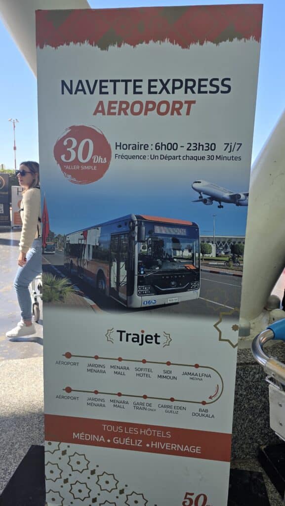 If you’re traveling independently and want the most budget-friendly option, Marrakech’s public airport bus is worth knowing about. The Alsa shuttle bus, Line 19, runs daily from 6:00 AM to 11:30 PM, departing roughly every 30 minutes. No matter when you arrive, the wait is usually short, making it a simple and predictable way into the city.