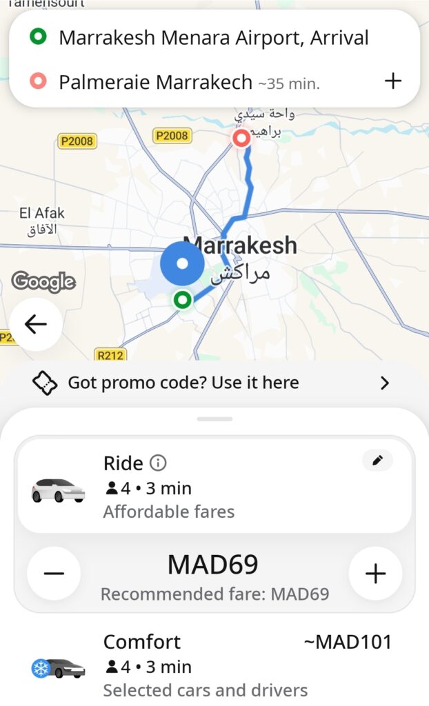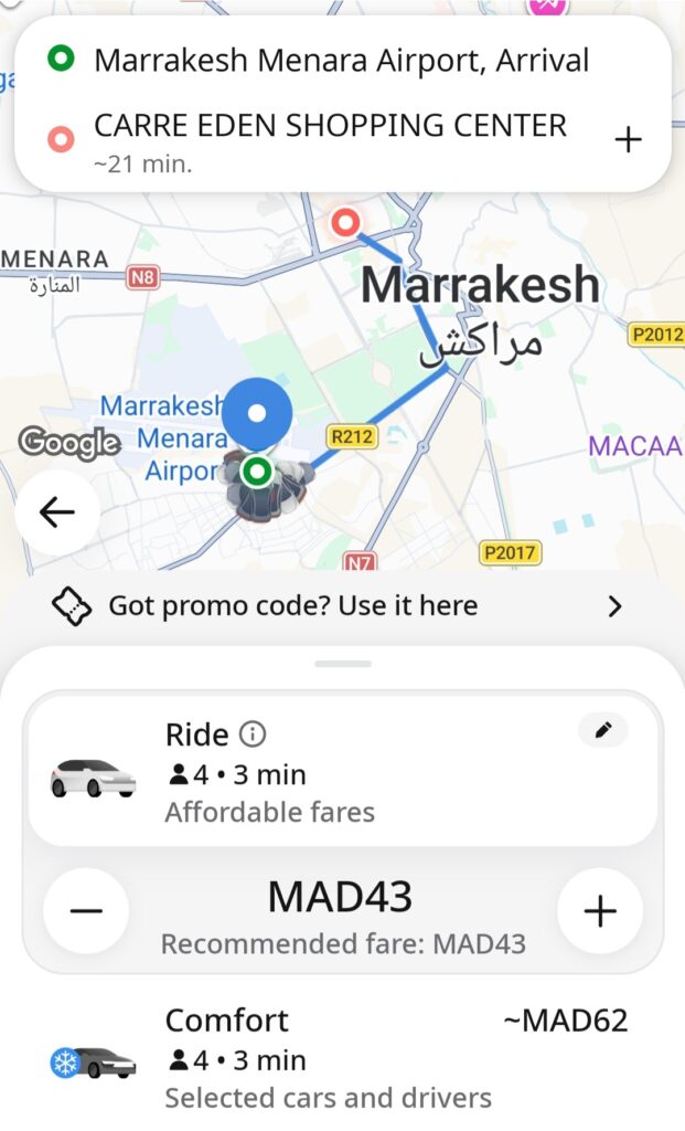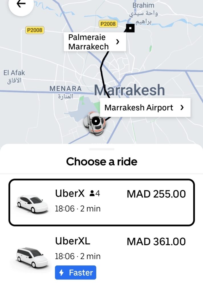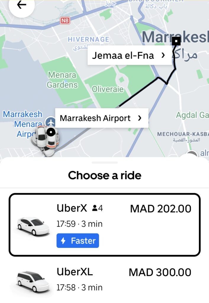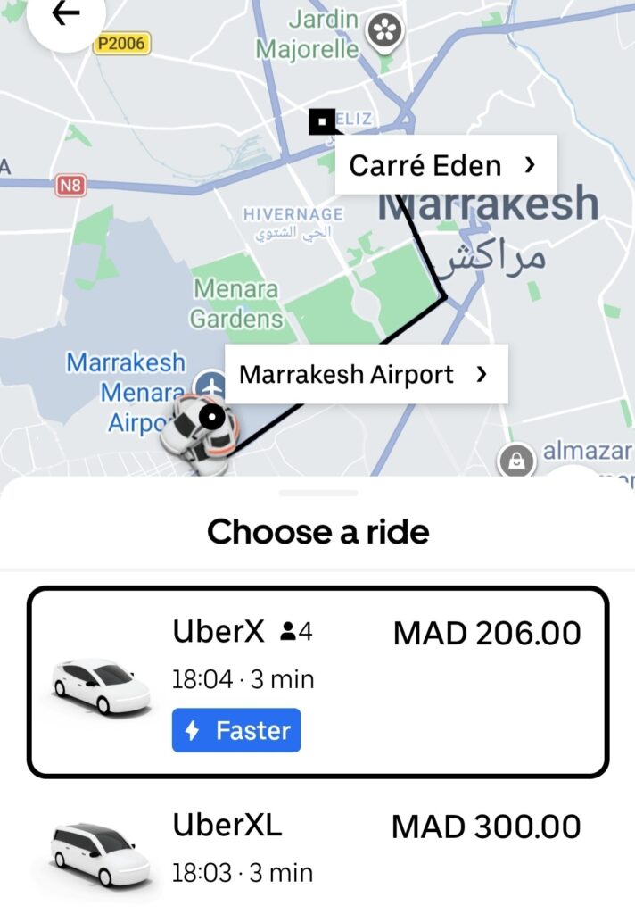 Real Examples of Uber and InDrive Fares from Marrakech Airport: