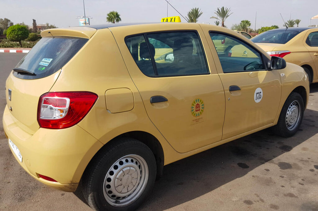 The taxis themselves are easy to recognize. Most are small, metallic gold-colored cars, typically Dacia Logan sedans, which are standard throughout Marrakech. They are functional rather than luxurious, but perfectly adequate for the short ride into the city.